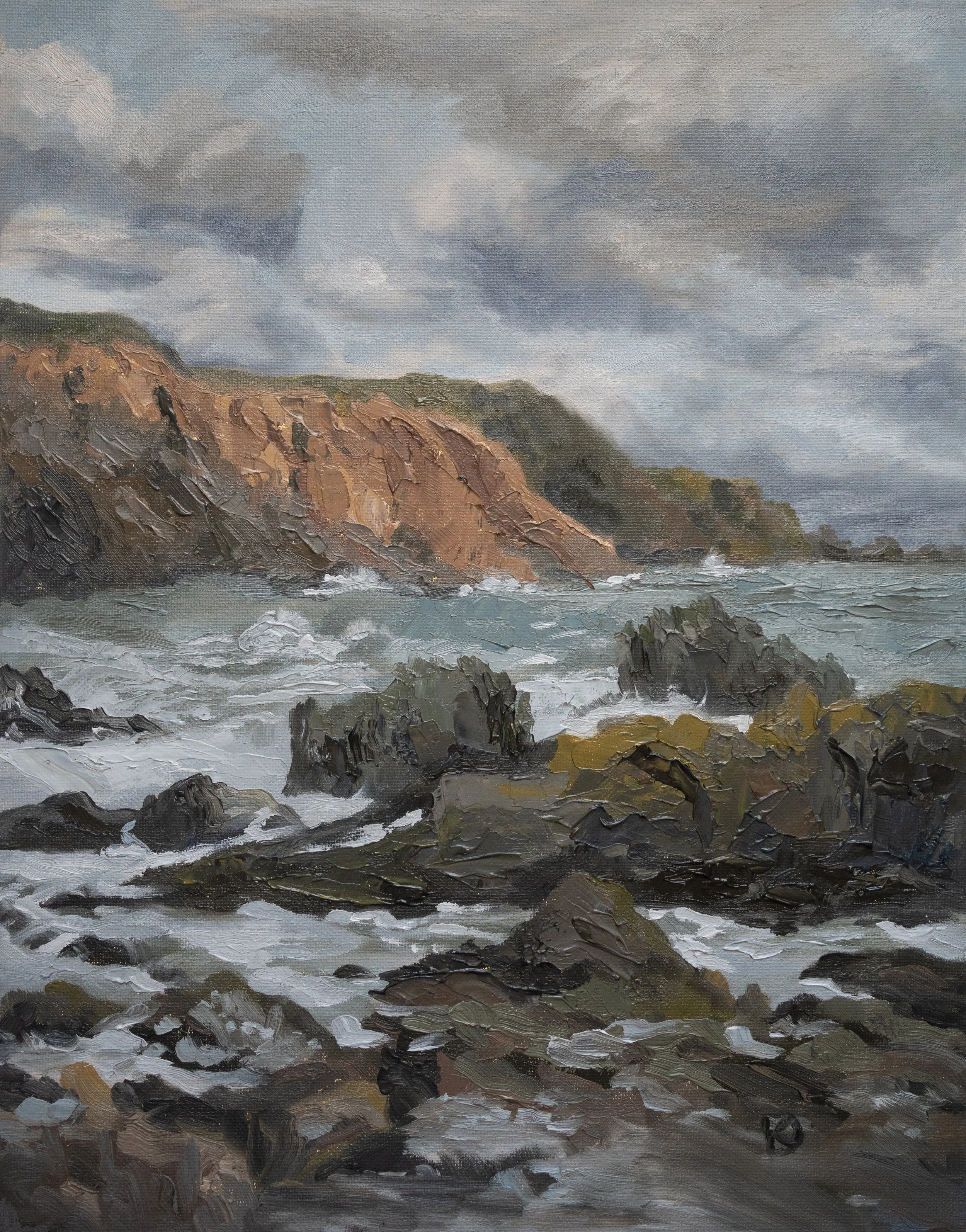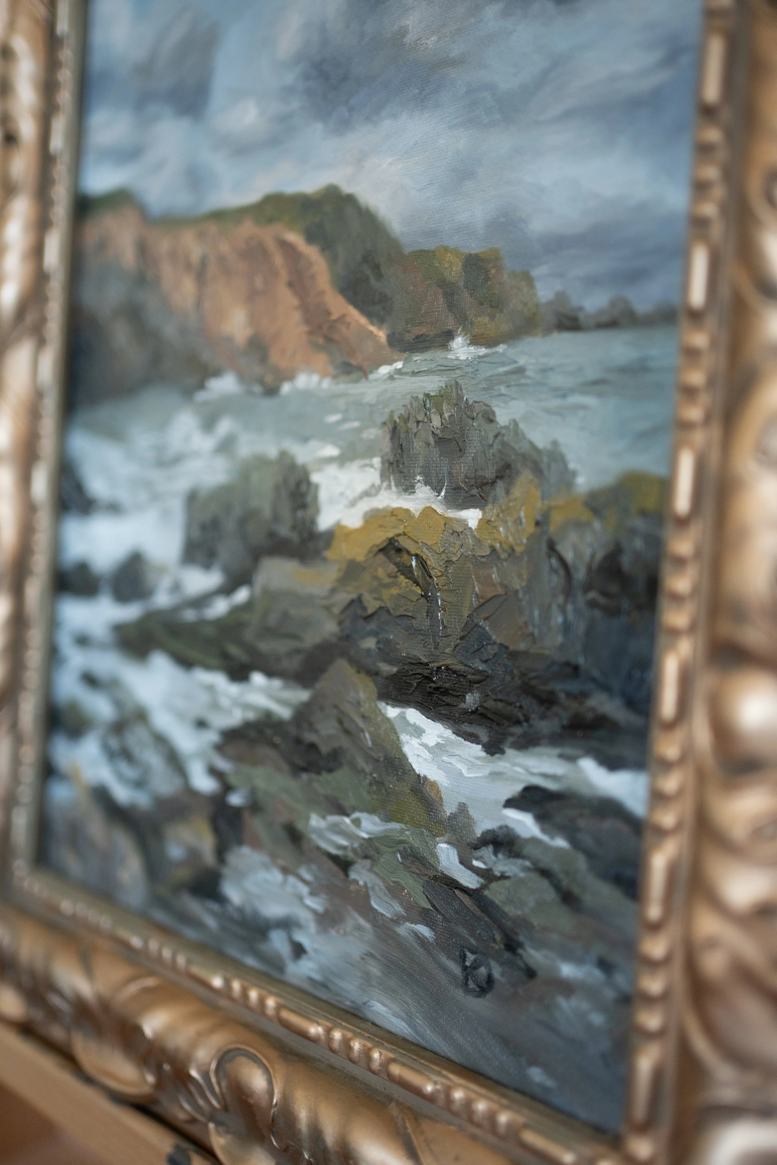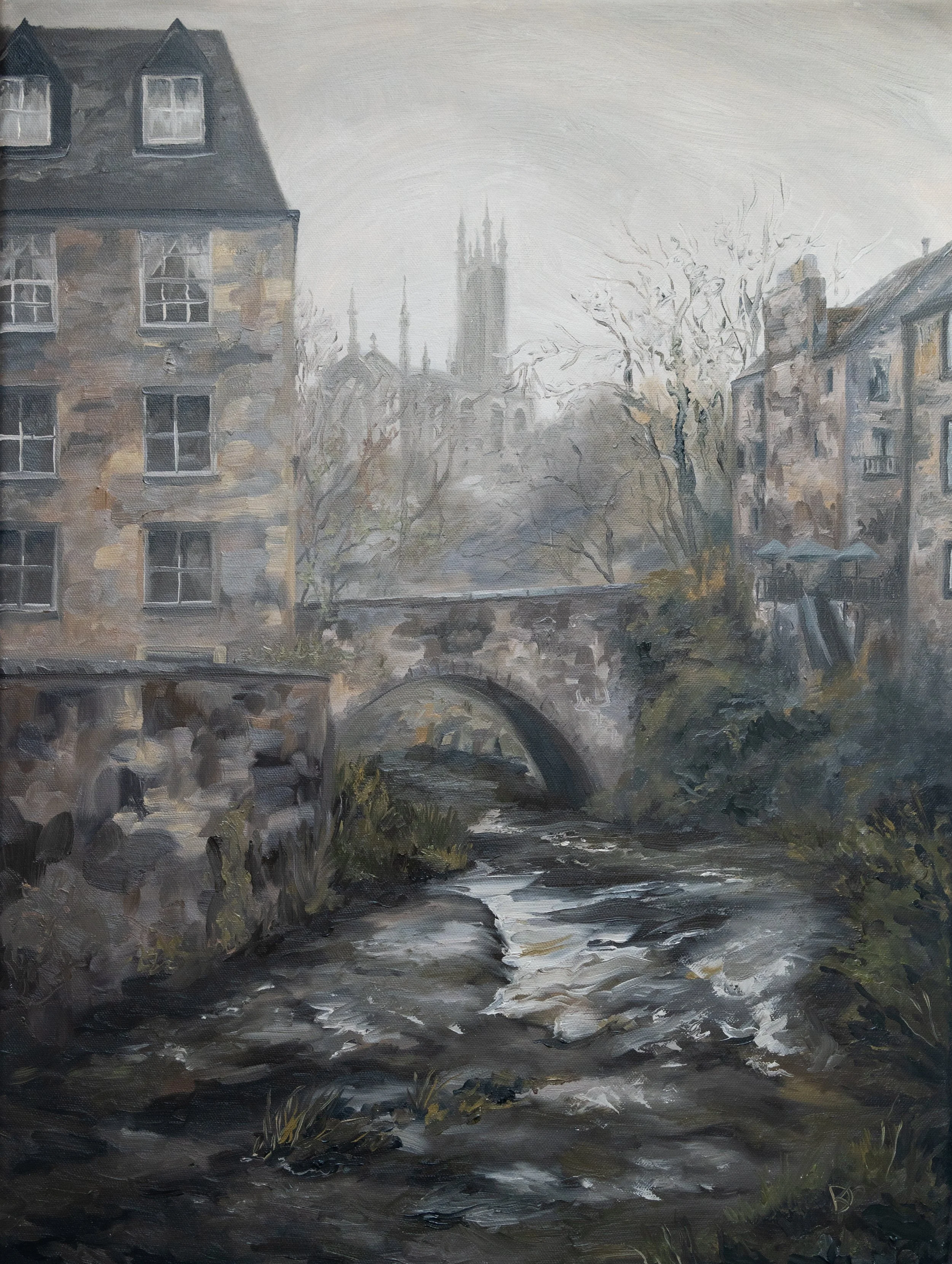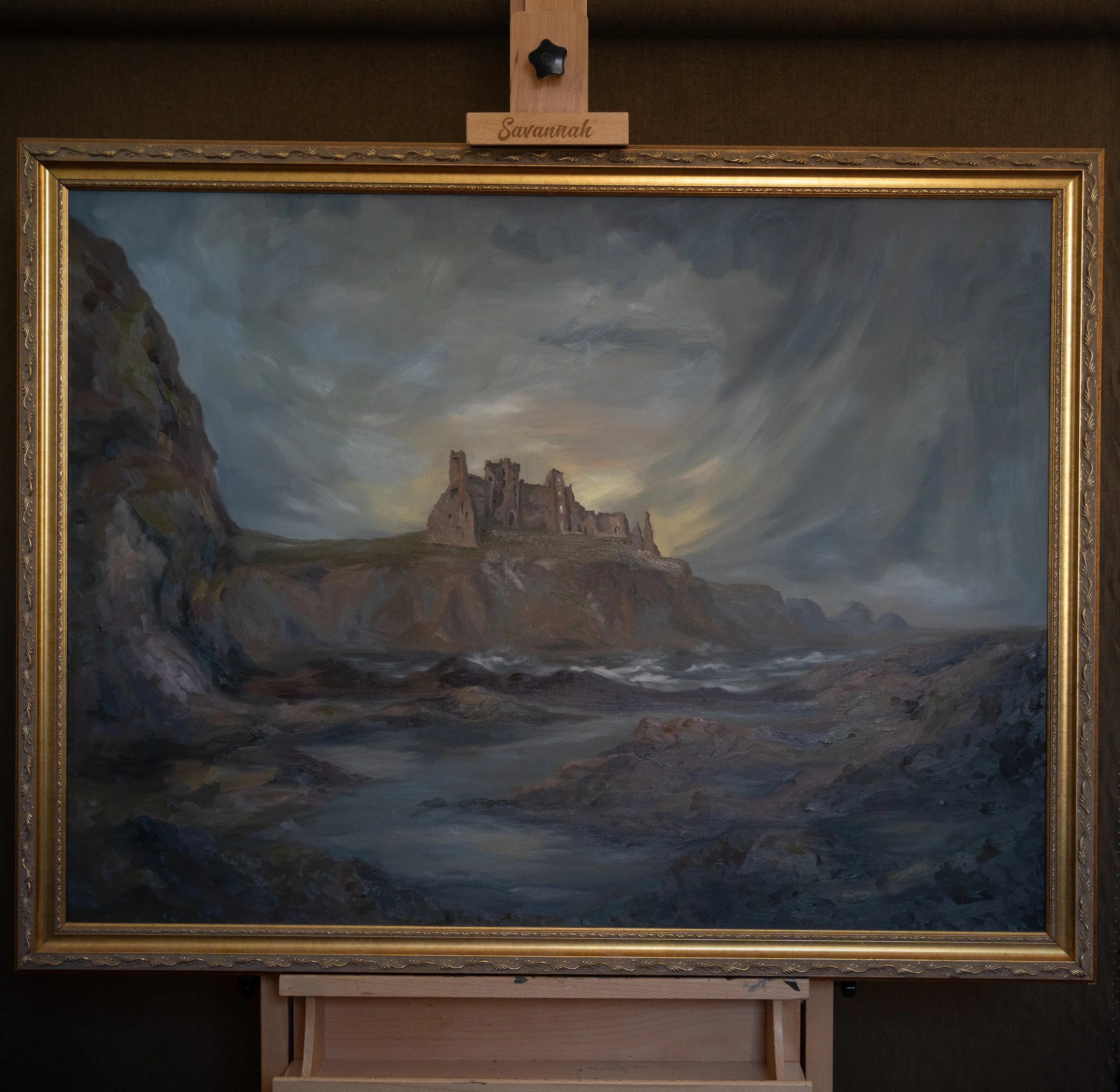 Obviously these paintings are all based in Edinburgh and the surrounding areas. But I’ve pulled heavily from how Edinburgh makes me feel. There is a brightness in the nature of the Scottish people that is infinitely magnetic. Layered over a long and right history full of the depth of these passionate people. I painted each piece to showcase the glow of light that then creeps into the heartiness of the shadows. And to display the impact, whether through the waves of an oncoming storm, or the spooky fog lying low over the cobblestones.