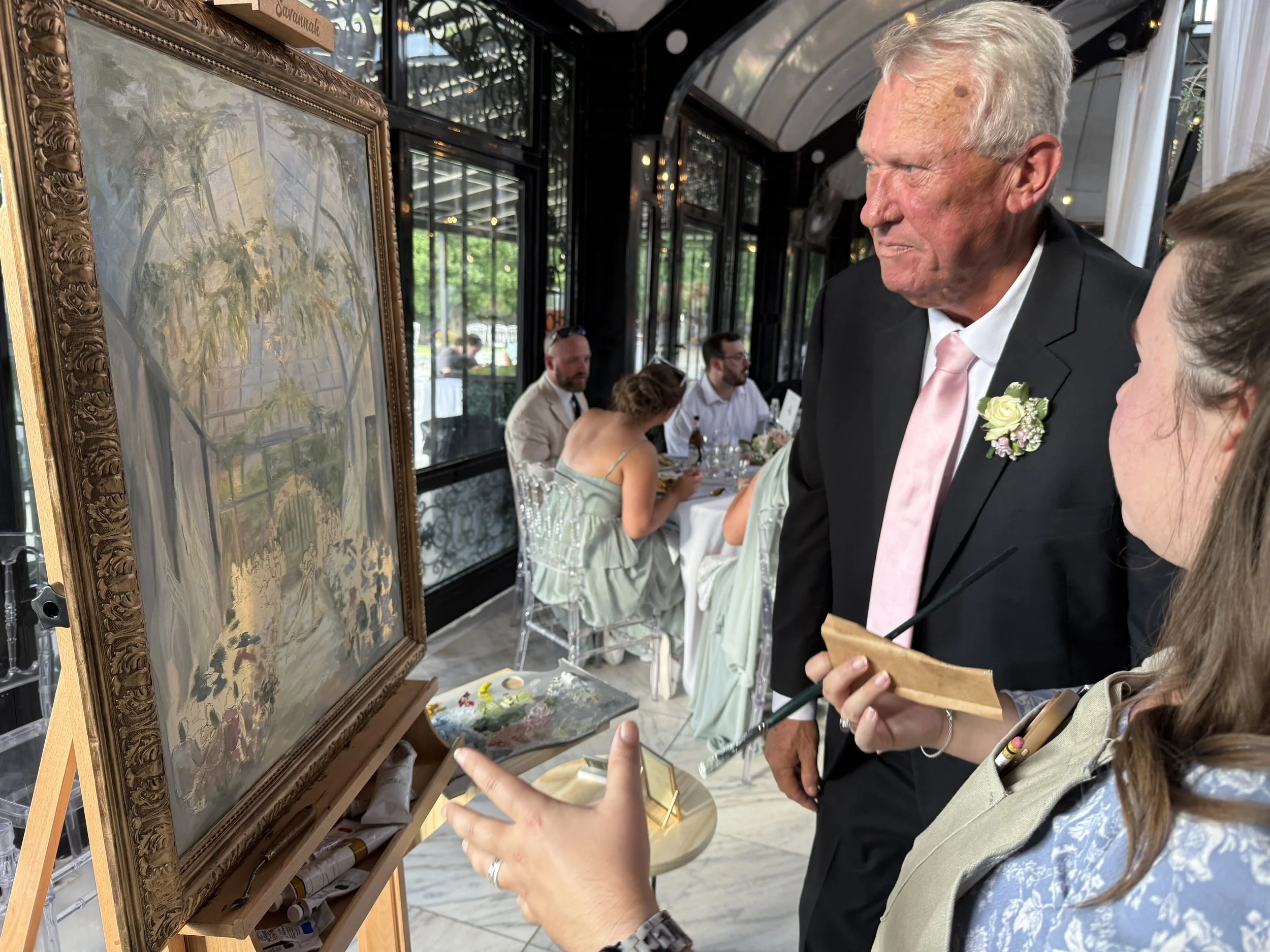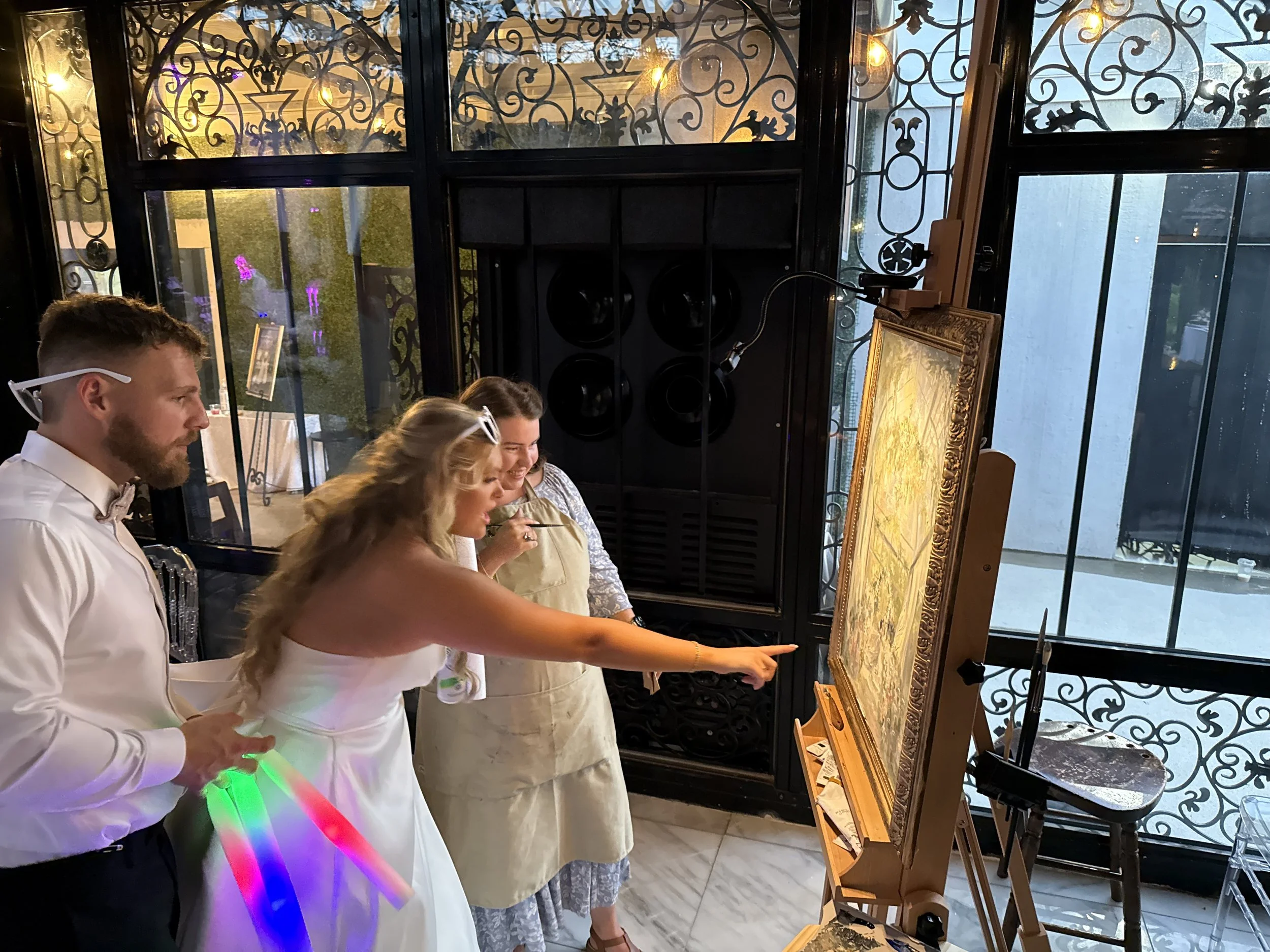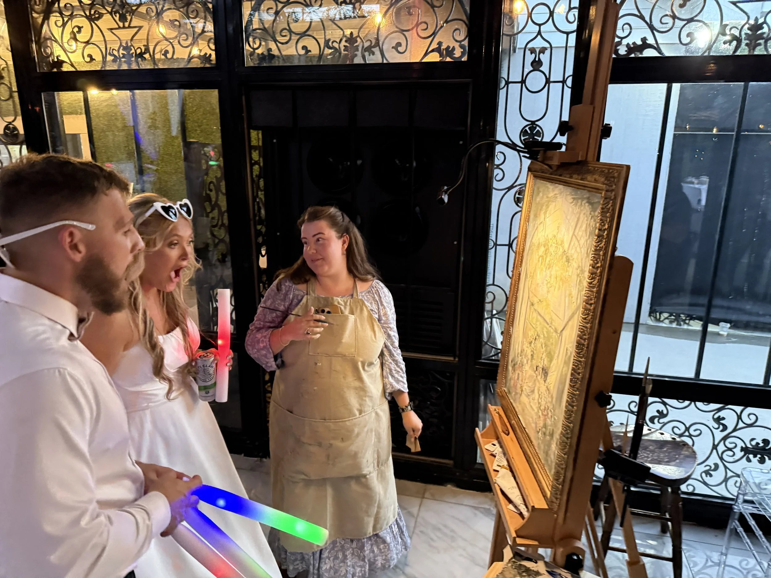 Chatting with the bridal party and guests is one of the best parts about live painting weddings and events.